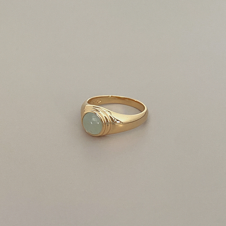 고급스러움과 앤틱함이 물씬 느껴지는 연한 그린 빛의 아쿠아마린 스톤이 세팅되어 있습니다. 동양적인 오리엔트 무드가 담긴 특유의 미니멀한 볼드함과 유려한 곡선의 밴드는 마치 아라비안 나이트의한 주인공이 연상될 만큼 우아함을 자랑합니다.