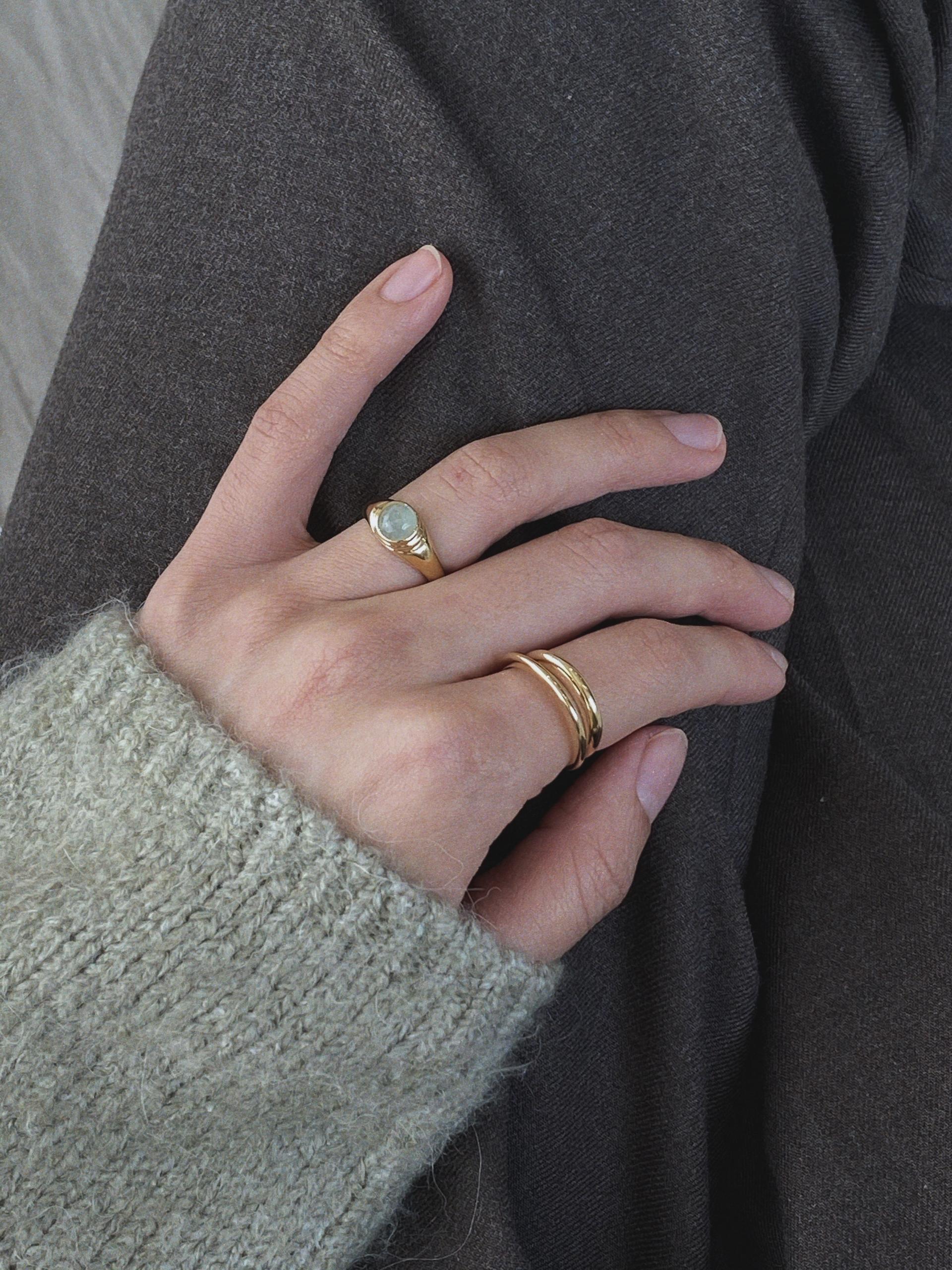 단독 착용으로도 충분히 멋스럽지만, 역시 원석 링은 솔리드 링과 어울릴 때 더욱 빛을 발하는 것 같아요, 이번 시리즈는 레이어링에 특히 신경썼기 때문에 어떤 반지를 같이 착용해도 조화로움을 느끼실 수 있어요.