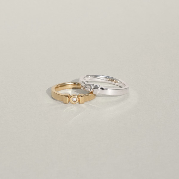서로 높낮이가 다른 형태의 링이 하나로 이어진 DUO RING 입니다. 아름다운 선율이 느껴지는 듯