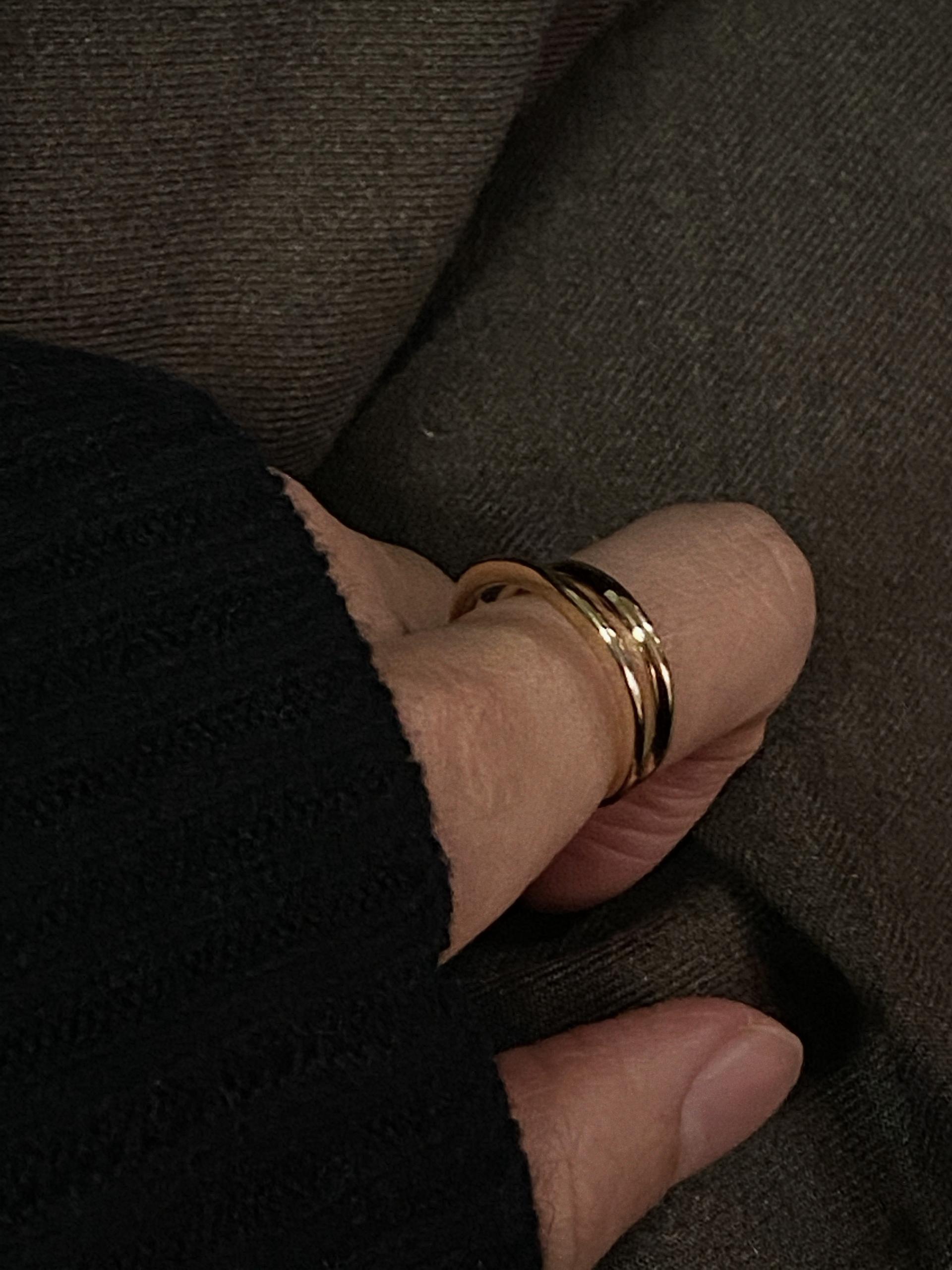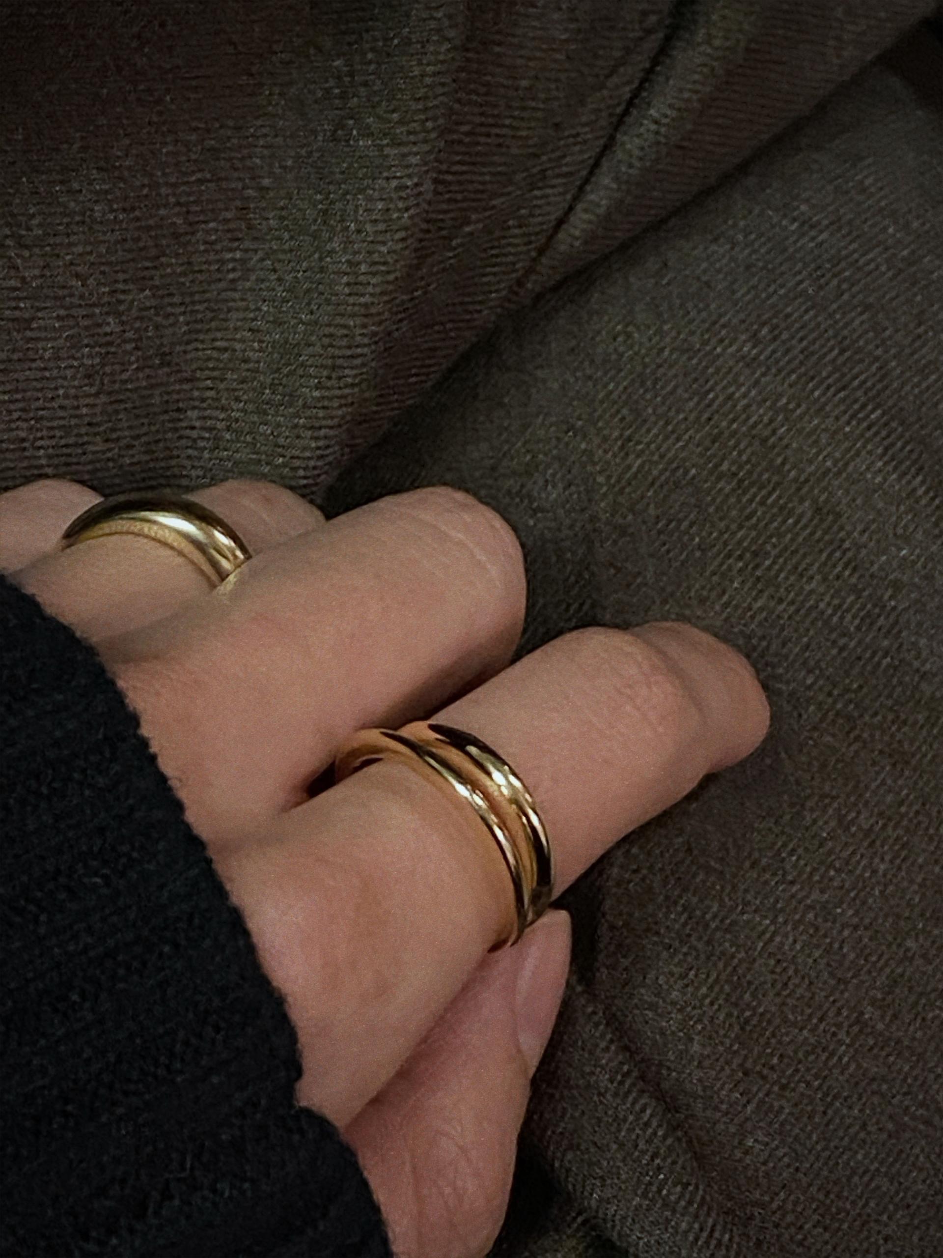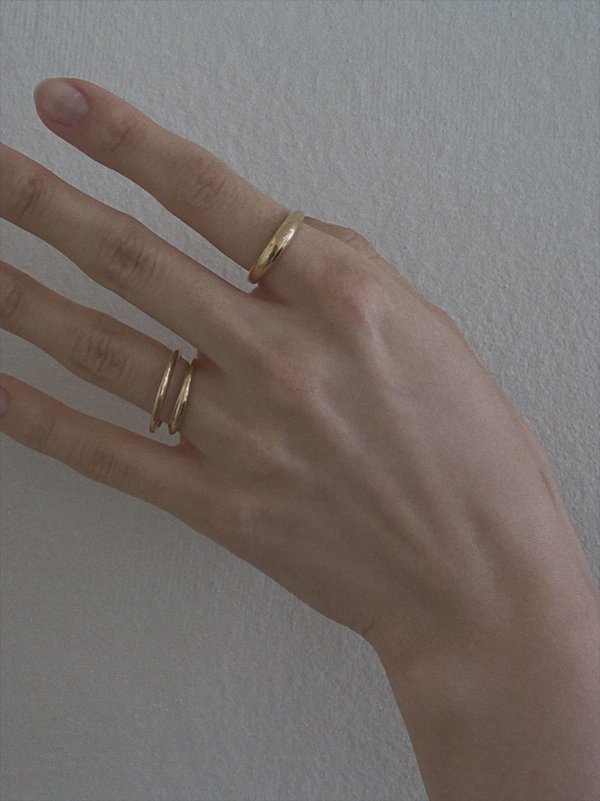 특히 검지나 중지에 착용했을때 너무 이쁜 것 같아요.사진과 같이 다른 솔리드 제품과 레이어링해도 멋스럽구요, 심플한 느낌으로 단독 착용만으로도 충분히 존재감 있고 매력을 느끼실 수 있는 링이에요.위/아래 위치를 바꿔 착용하거나 링 사이의 간격을 조정해서 좁게 또는 넓게.여러가지 느낌으로 즐겨주시면 되어요.