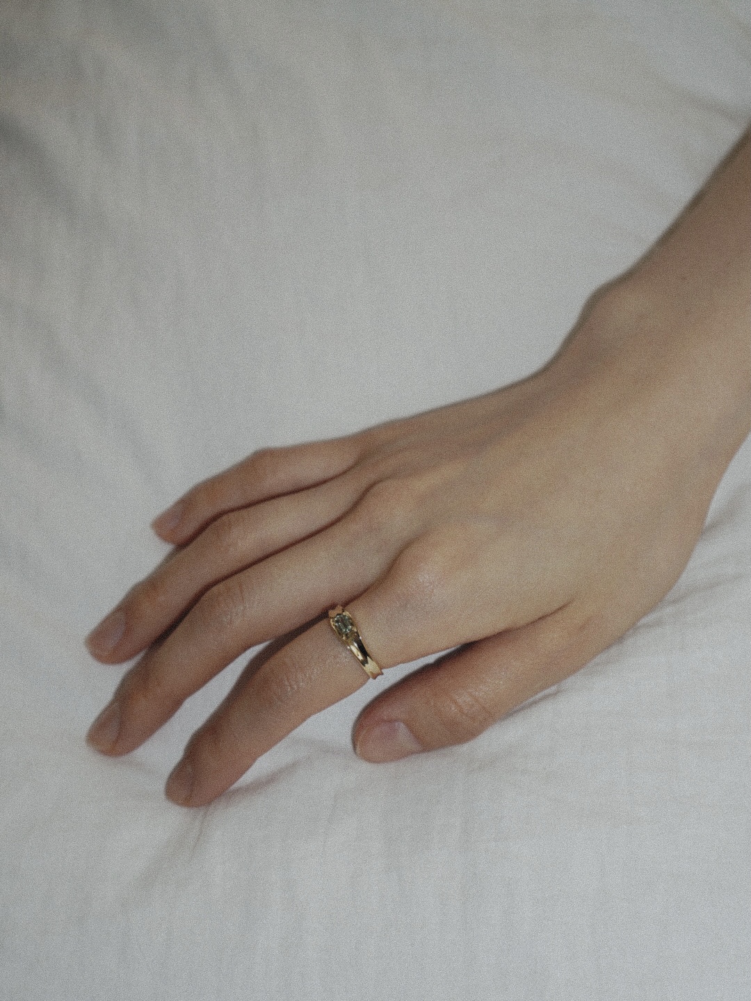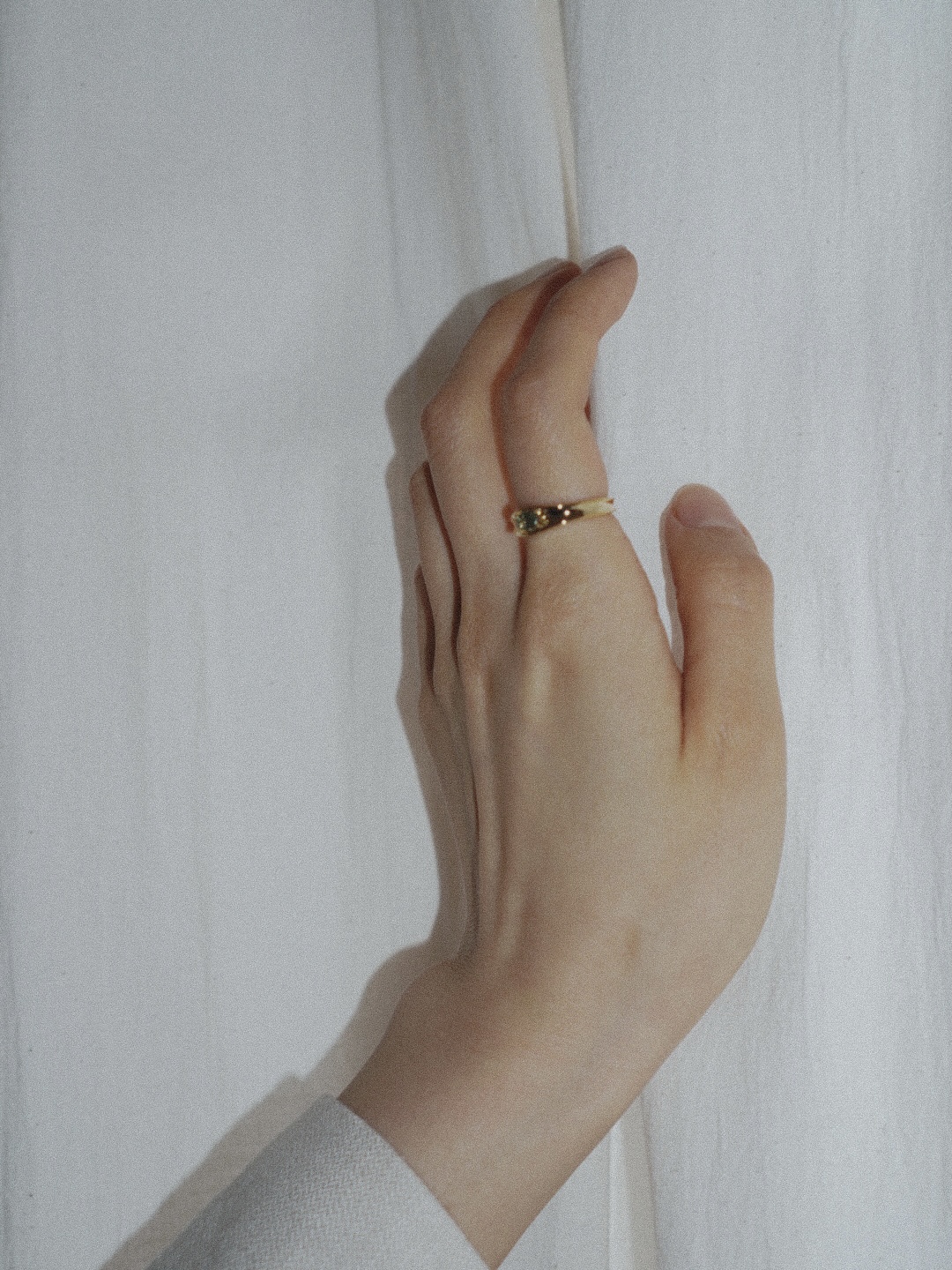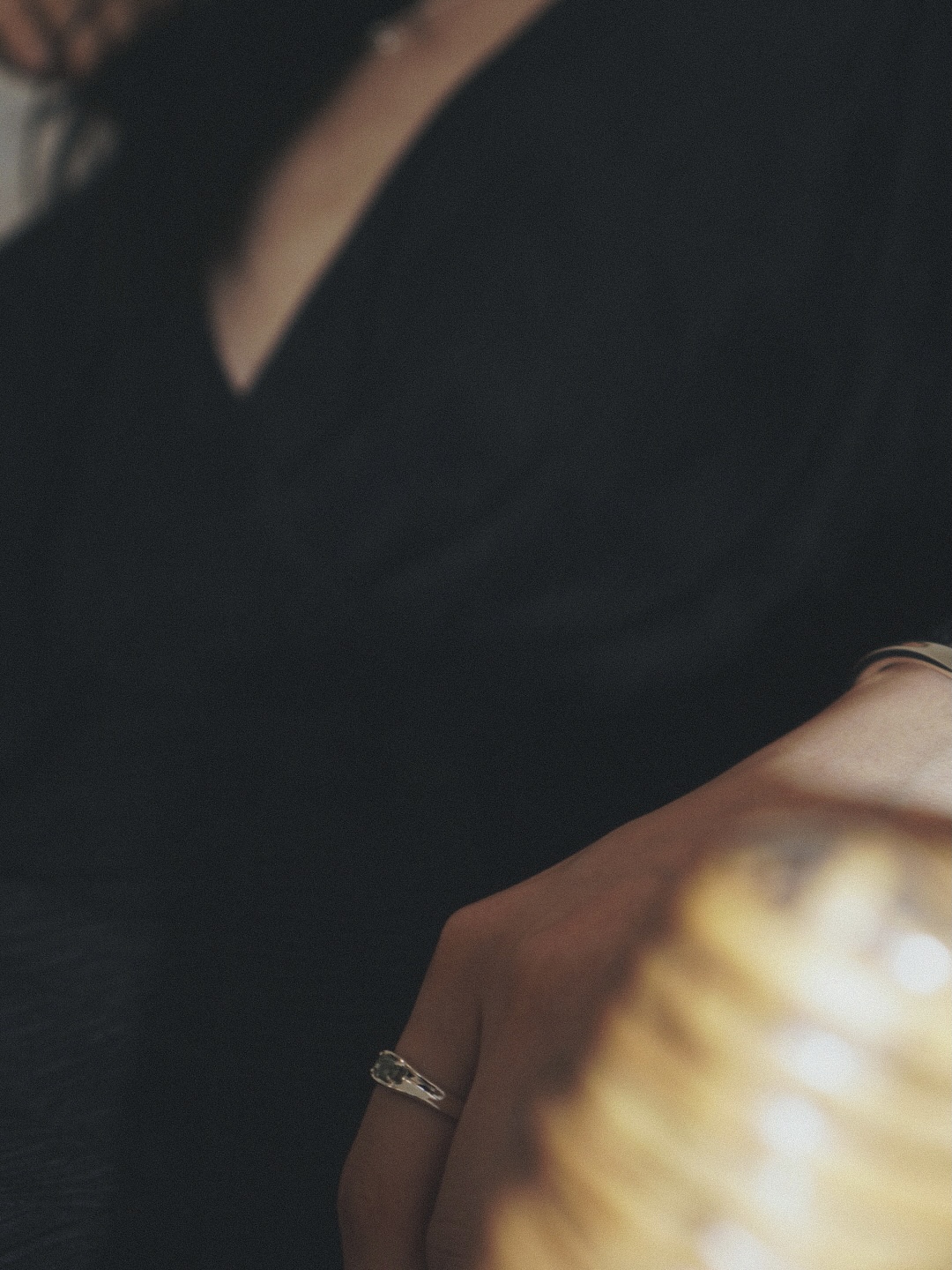 자연 그대로의 색감인 네추럴 그린 사파이어가 세팅되어 있으며, 부족인들의 예술품에서 영감을 받아 고안된 아름다운 쉐입이 매력적입니다. 유광 폴리싱 스타일이지만 착용하면서 자연스럽게 반무광으로 에이징되기에 더욱 멋스러운 느낌으로 즐기실 수 있습니다.